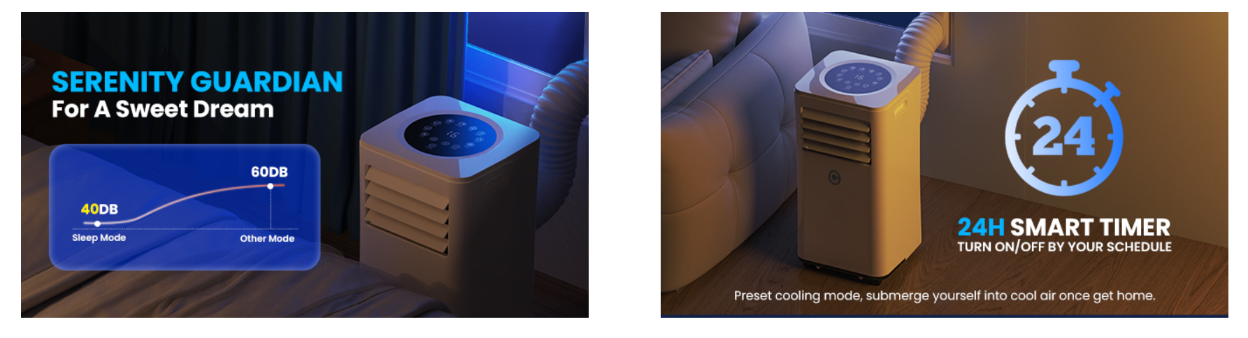- 🌛【Guard Your Tranquil Slumber】Enjoy whisper-quiet serenity with our ultra-quiet air conditioner. Our air conditioner is equipped with a high-quality air compressor and multi-layer cottons, serving as indispensable noise-reducing parts. Drift off into a tranquil slumber under sleep mode with light off and lower noise. Immerse yourself in a childlike sleep under our sleep mode's gentle hum below 40 DB, ensuring a ultra-quiet undisturbed rest every time.