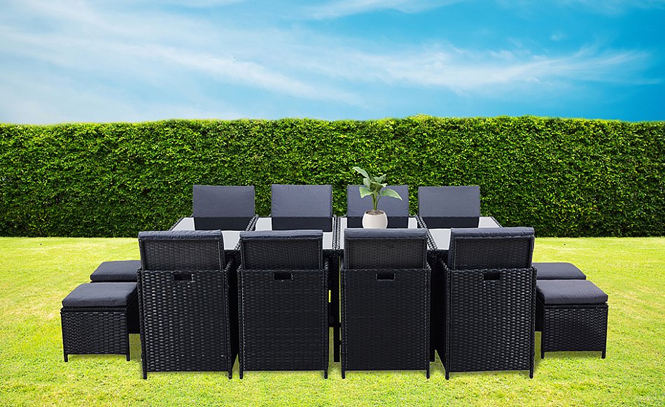 Home / 【Home&Garden】Meuble de Jardin en Poly rotin Lounge Outdoor Canapé Lounge Set Noir