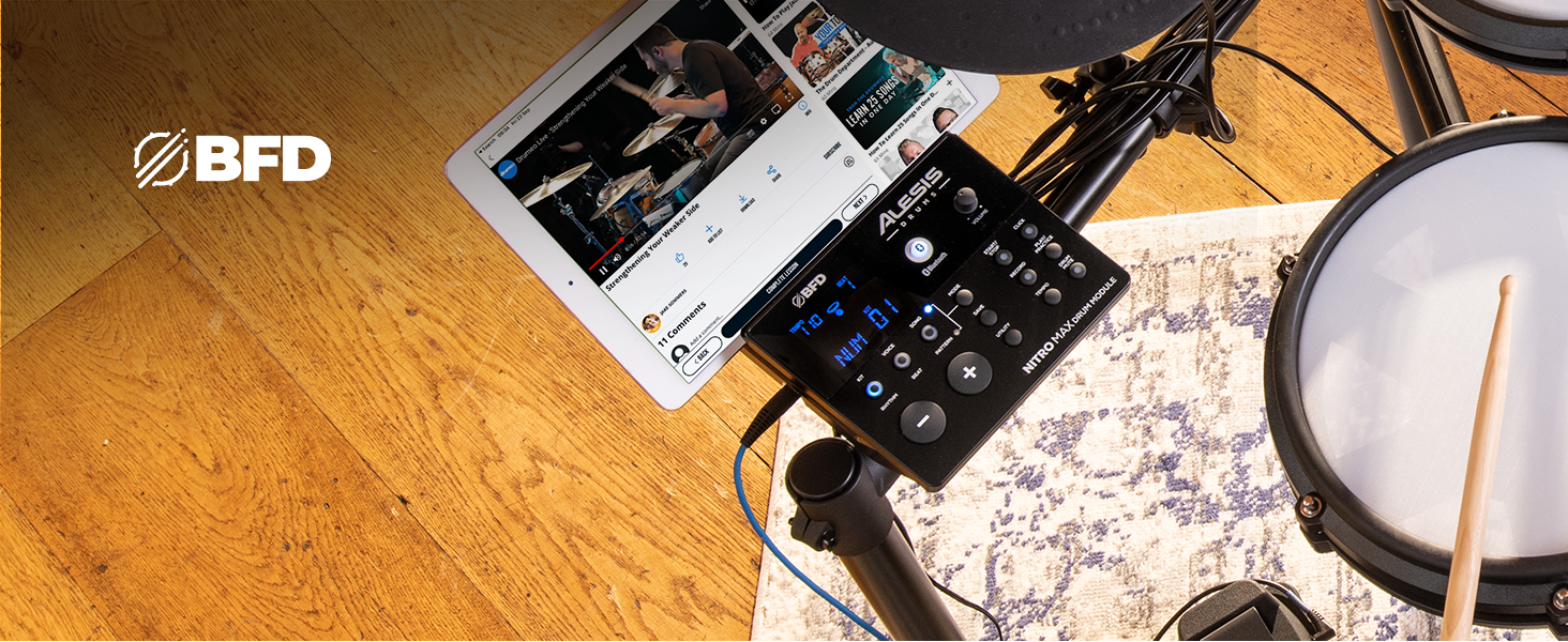 • Create and Customize Your Own Kits – Upgraded Drum Module with 32 ready-to-play BFD kits, 16 user-made kits & 440+ drum, cymbal & percussion sounds and multi-velocity samples for a real acoustic drum sound