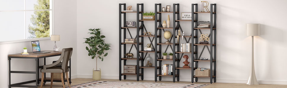 【Furniture】Rustic Super Wide 86 Inch 5 Tier Bookcase with 23 Shelves, 5-Shelf Etagere Large Open Bookshelf