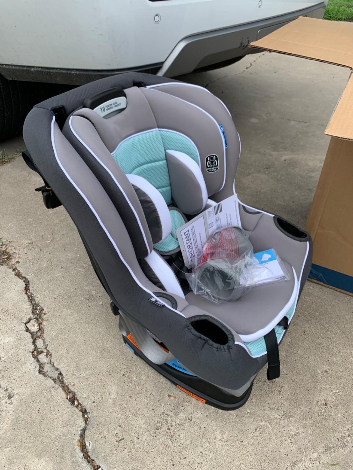 • Convertible car seat grows with your child from rear-facing harness ( 4-50lbs) to forward-facing harness (22-65 pounds)